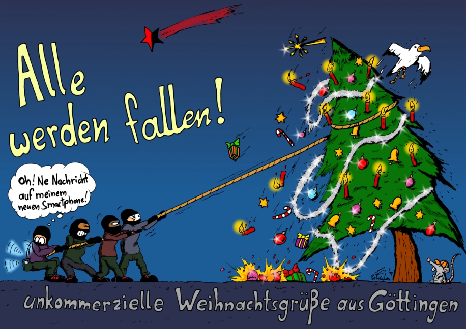 Die Weihnachtskarte von 2016. Kolorierte Version des schwarz-weißen Weihanchtsbilds von 2014, das neben der damaligen Weihnachtskarte anderen Motivs von mir auf die Seite gestellt wurde.